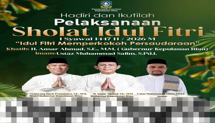Pelaksanaan salat Idul Fitri 1447 H di Kota Batam dan halalbihalal di Tanjungpinang merupakan bagian dari upaya Pemerintah Provinsi Kepri untuk mendekatkan diri kepada masyarakat. Dengan mengusung tema “Idul Fitri Memperkokoh Persaudaraan”, acara ini diharapkan dapat menjadi sarana untuk mempererat hubungan antar warga, sekaligus meneguhkan semangat kebersamaan di tengah masyarakat. Mari kita sambut hari yang fitri ini dengan penuh sukacita dan semangat saling berbagi.